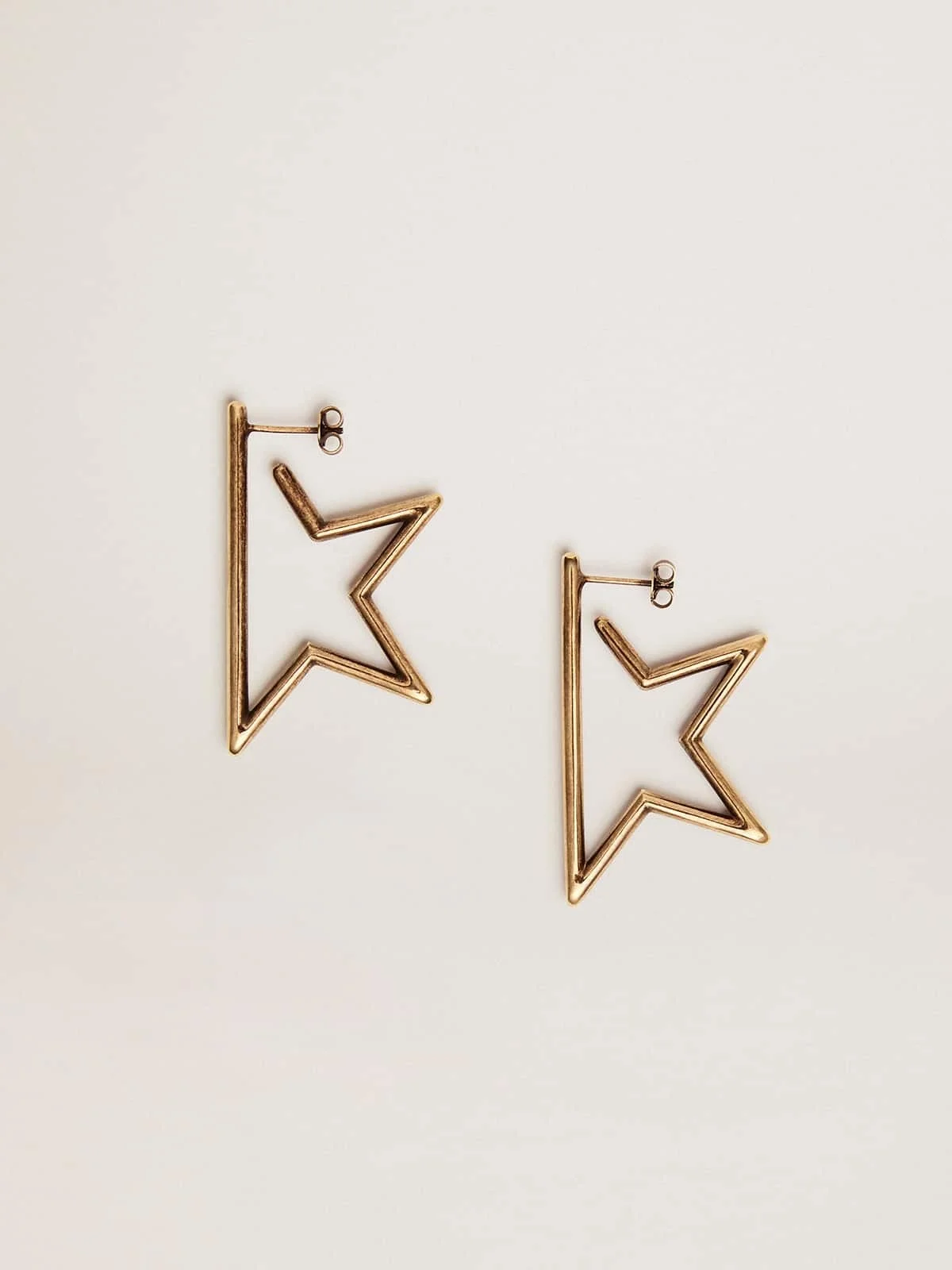 The magic of a starry sky, always with you. Linear and unique, the iconic Golden Star becomes the protagonist of our Star Jewelmates Collection. Your new memories to wear: enriched with precious details or timelessly basic, it illuminates your days and nights with its sparkling power. DETAILS Item No. 8050235284821 - Family: Star - Drop earrings in the shape of the Golden star - Color: antique gold - Main material: 100% brass metal - Made in Italy - Made in Italy