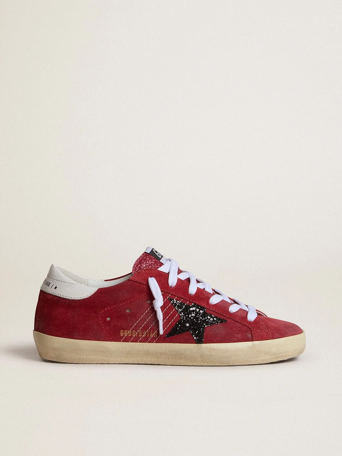 A timeless icon yet one that’s constantly evolving. At Golden, we love taking our classics and reworking them all the time, always from a new angle. With a faded red suede upper, these women’s Super-Star feature a silver glitter star and white leather heel tab. The white laces add the finishing touch: beautiful things that never go out of fashion. DETAILS Item No. GWF00101.F007203.40525 - Red suede upper - Silver glitter star - White leather heel tab - White laces - Vintage finish - Upper: 80% cow leather, 9% polyurethane, 8% nylon, 2% polyethylene terephthalate, 1% cotton - Lining: 41% cotton, 31% cow leather, 18% polyurethane, 6% polyester, 4% viscose - Sole: 100% rubber - Handmade - Made in Italy