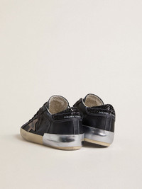 Women's Super-Star LTD in black leather with gold leather star and black glitter heel tab