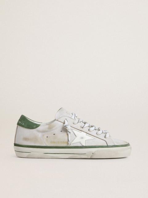 The Resort 2025 Collection invites you to slow down and embrace the effortless beauty of Mediterranean living. A celebration of lived-in textures, laid-back rhythms, and the understated elegance woven into life’s simplest moments. With a white leather upper accentuated by a blue stripe along the foxing, these women's Super-Star feature a light blue leather star and heel tab. The ice-gray laces and a complementary white cotton tote bag with woven print and "Pescheria Golden" logo in shades of blue add the finishing touch, included with any online or in-store purchase. DETAILS Item No. GWF00857.F007812.12339 - Color: white - Light-blue leather star - Light blue leather heel tab - Blue stripe along the foxing - Ice-gray laces - Vintage finish - Cotton tote bag with marine print and "Pescheria Golden" logo included - Upper: 100% cow leather - Lining: 41% cotton, 31% cow leather, 18% polyurethane, 6% polyester, 4% viscose - Sole: 100% rubber - Handmade - Made in Italy