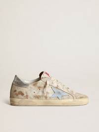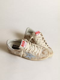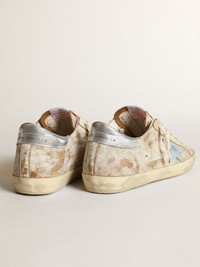 Women’s Super-Star sneakers with smoky light-blue leather star and silver metallic leather heel tab