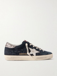 Super-Star distressed glittered leather-trimmed suede sneakers Navy