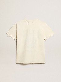 From Venice, our home, to Paris, our dream. This Journey Collection captures the essence and beauty of everyday moments in the City of Lights, immersed in a mesmerizing atmosphere where intimacy, authenticity and curiosity are the pulsating soul of it. In aged white cotton jersey, this women’s T-shirt features a faded Golden Flower Mill logo and print on the front. And hand-worn areas on the edging add the finishing touch, making this garment unique. DETAILS Item No. GWP01220.P001388.11560 - Journey Collection - Color: aged white - Double star on the back - Vintage-effect print on the front - Hand-worn areas on the edges - Lived-in effect - Main material: 100% cotton - Made in Italy The model is 177 cm tall and is wearing a size S.