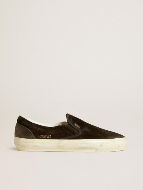 VCE speaks a simple language. Channeling the carefree image of California skate culture, the slip-on design embodies comfort, versatility and freedom of movement. This women's model with a rubber toe and black suede upper features a black leather heel tab. DETAILS Item No. GWF00306.F006949.90100 - Black suede upper - Black leather heel tab - Lived-in finish - "VCE" soft insole - Stars on the sole - "Golden Goose" embossed on the heel - Upper: 100% cow leather - Lining: 39% cotton, 38% polyurethane textile, 15% polyester, 8% viscose - Sole: 100% rubber - Handmade - Made in Italy