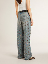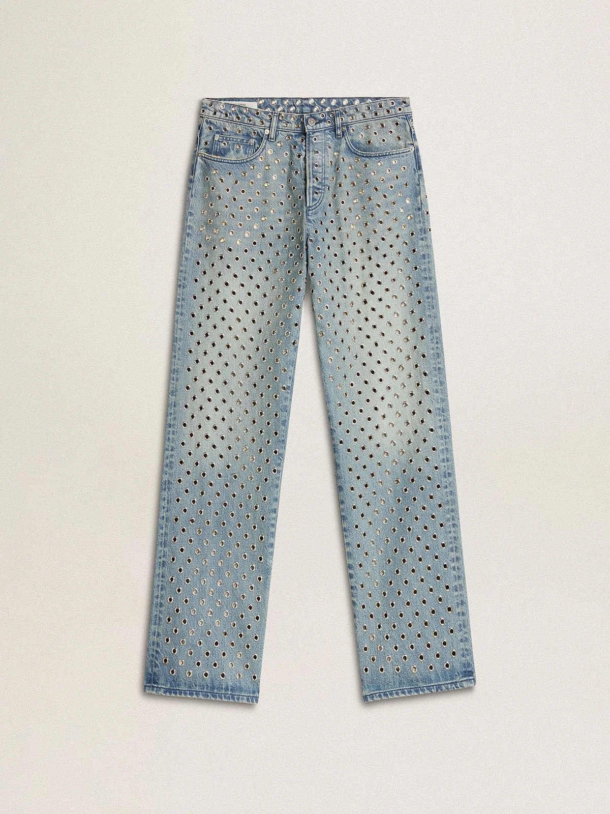 Women's washed jeans with all-over eyelets