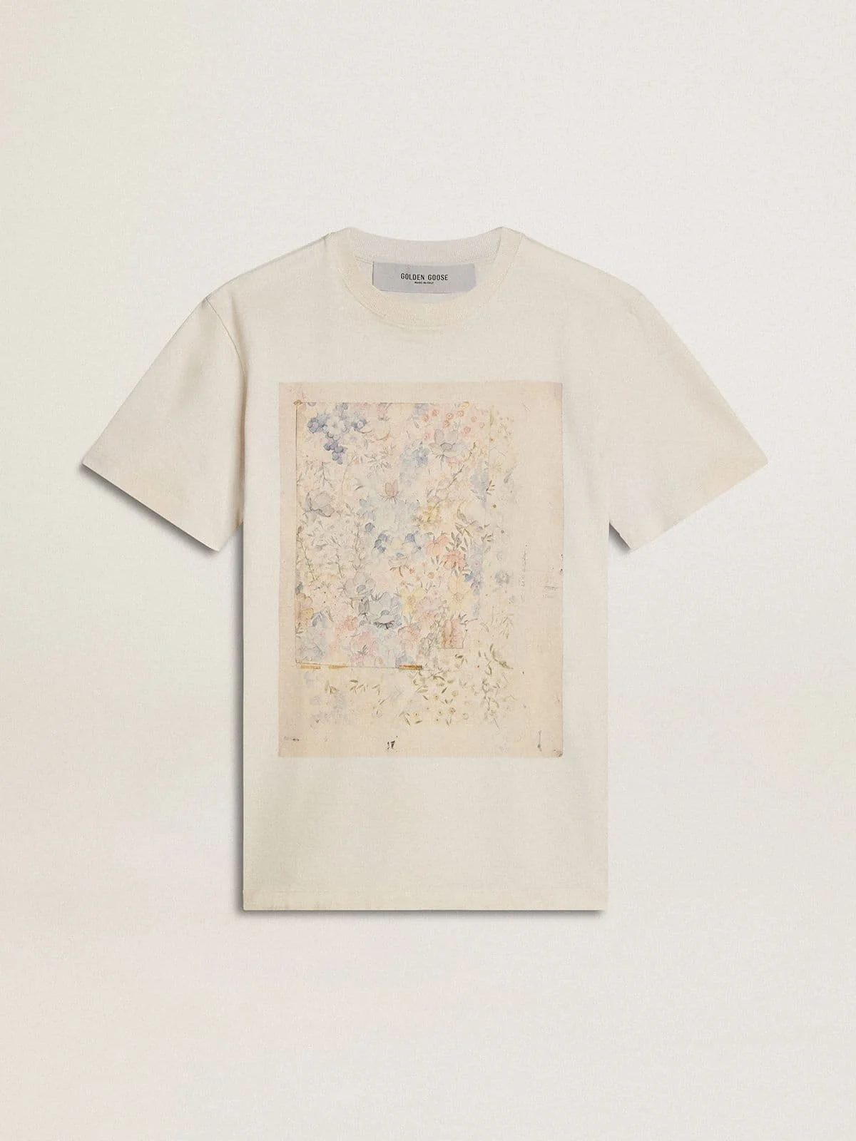 Inspired by the iconic Seventies, the carefree spirit of that era comes to life with the first drop of our Fall/Winter 25 collection. This regular-fit white T-shirt features a front print with a multicolor floral pattern. The double star on the back adds the finishing touch. DETAILS Item No. GWP01220.P002119.11788 - Journey Collection - Color: white - Regular fit - Multicolor floral print on the front - Main material: 100% cotton - Made in Italy The model is 177 cm tall and is wearing a size S.