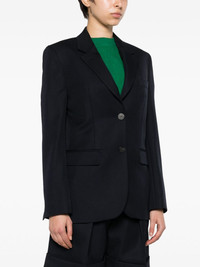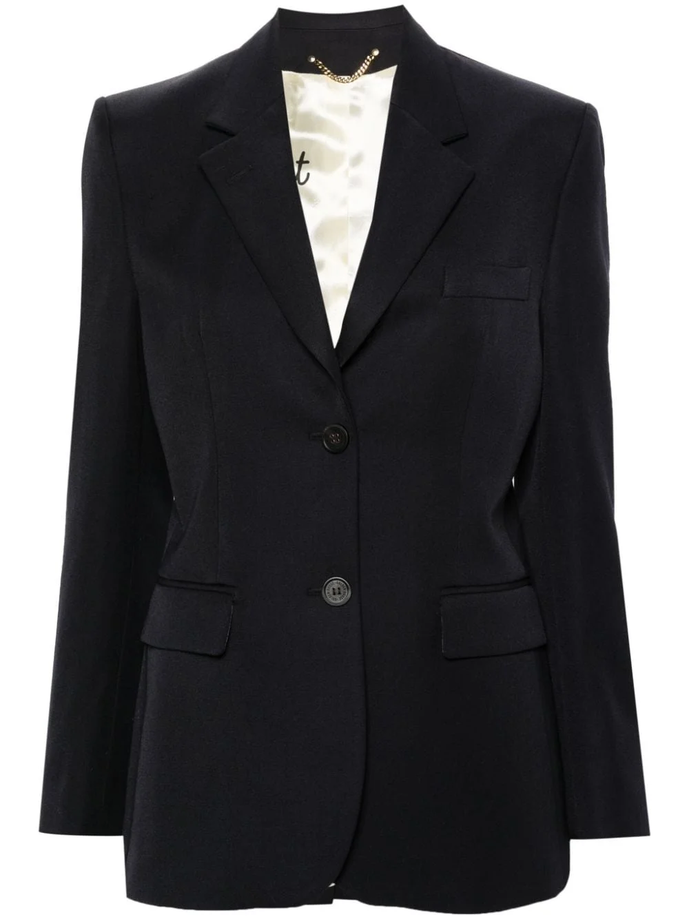 wool-blend blazer Highlights - Navy blue - Wool blend - Notched lapels - Front button fastening - Long sleeves - Buttoned cuffs - American rear vent - Chest welt pocket - Two side flap pockets - Full lining Made in Italy Composition Lining: Viscose 52%, Acetate 48% Outer: Polyester 55%, Wool 50%, Viscose 50%, Virgin Wool 45% SIZE & FIT Model measurements Height 5 ft 11 in(1.8 m) Bust/Chest 33.07 in(84 cm) Hips 37 in(94 cm) Waist 25.59 in(65 cm) FittingInformation Designed for a slim fit that sits just away from the body offering a close yet comfortable fit The vented hem offers movement at the rear Made from a midweight non-stretch fabric This piece fits true to size – take your usual size Washing instructions Dry Clean Only