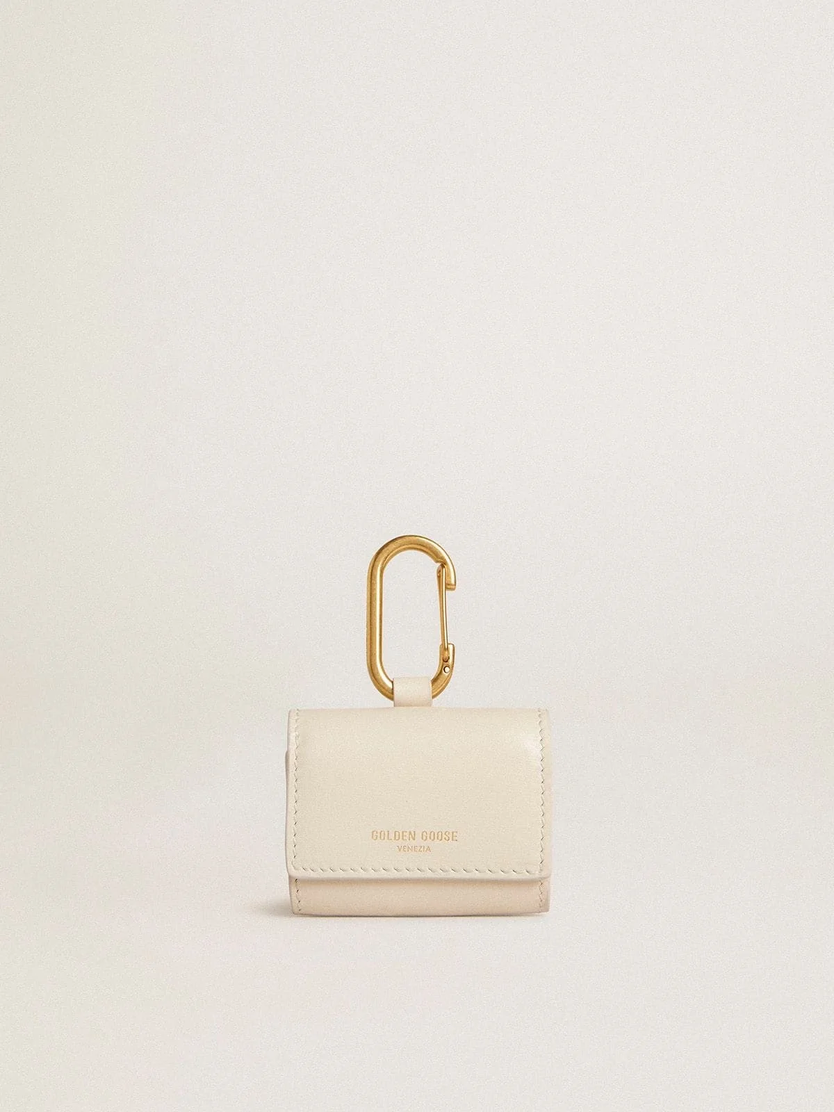 Designed to be both unique and practical, these travel accessories are perfect for your global adventures. In worn white, this AirPod case features an adjustable lanyard and gold-colored detailing. Golden Goose lettering in gold at the center and a snap button fastening add the finishing touches. DETAILS Item No. 8050235840041 - AirPod case - Color: worn white - Worn white adjustable lanyard - Gold-tone snap hook - Golden Goose lettering in gold - Snap button fastening - Length: 7 cm - Height: 6 cm - Width:1 cm