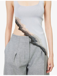 PRODUCT DETAILS - Grace Ling stretch-knit top - 77% viscose, 12% elastane, 11% nylon - Slim fit, scoop neck, sleeveless, flame graphic print at front, asymmetric hem, all-over ribbed and knitted - Dry clean - Made in New York - True to size - Model is 5ft 10in/1.78m and wears a size small - Lightweight, stretchy Ref: R04475651