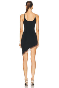 Details - 77% viscose, 11% nylon, 12% lycra - Dry clean only - Unlined - Pull-on styling - Asymmetrical hem design - Midweight knit fabric with sheer ombre trim - Made in China - Our Style No. GELF-WD10 - Manufacturer Style No. GL-SS25-K5003