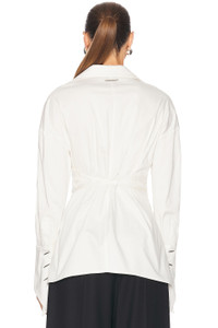 Details - 100% cotton - Hand wash - Front button closure - Front tie-up closure - Silver-tone hardware accent at front - Silver-tone buttoned cuffs - Poplin fabric with asymmetrical hem - Made in US - Our Style No. GELF-WS11 - Manufacturer Style No. GL-SS24-G1102