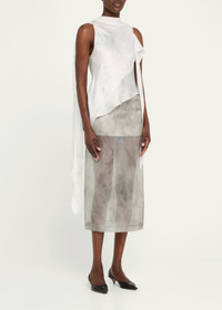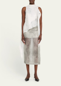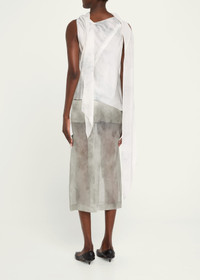 GRACE LING draped top with long flowing scarves on the side Crew neckline Sleeveless Bias fit Asymmetric hem Diagonal back zipper Silk self/lining Dry clean Made in USA from imported materials Online Inquiries: BGS21_B9SWD| Store Inquiries: #4959679