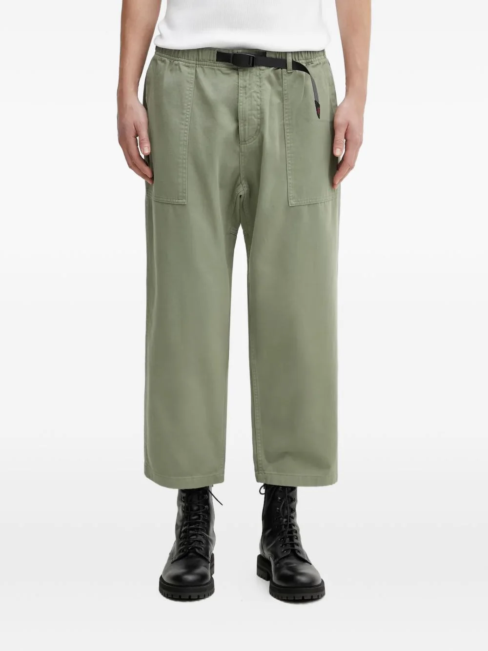 elasticated-waistband straight trousers Highlights - Sage - Elasticated waistband - Belt - Front patch-pockets - Rear welt-pockets - Straight leg Imported Composition Cotton 100% Washing instructions Read Manufacturer Guidelines