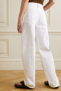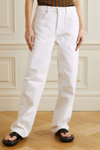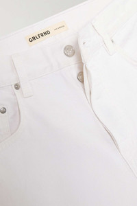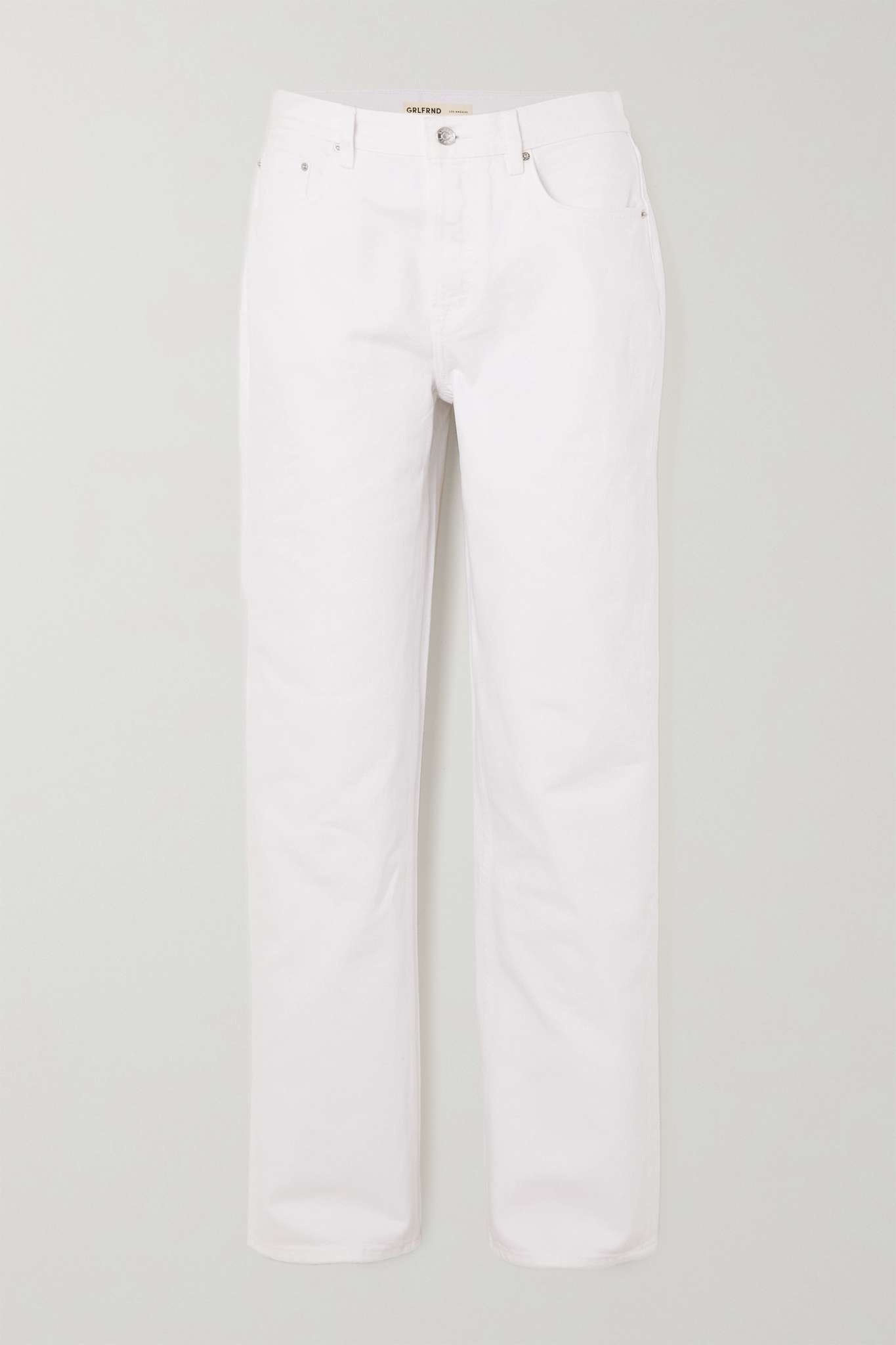 EDITORS'NOTES GRLFRND's 'Bella’ jeans are cut from sturdy denim in a bright-white wash that feels fresh and crisp. They’re designed to sit low on the waist and have a relaxed boyfriend fit. Elevate the long length with heeled ankle boots. SIZE & FIT - Fits true to size, take your normal size - Pants measure high rise, however intended fit is to be worn loose and low on the hips - Mid-weight, non-stretchy fabric - Size 26 jeans have an inside leg of 31.7”/ 80.5cm - Model is 177cm/ 5'10" and is wearing a size 26 DETAILS & CARE - White denim - Partially concealed button fastenings along front - 100% cotton - Machine wash - Designer wash: Sierra