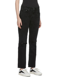 Cropped-leg slim-fit non-stretch cotton denim jeans in black. · Belt loops at waistband · Five-pocket styling · Low-rise · Zip-fly · Tonal hardware Supplier color: Fifth avenue 100% cotton.