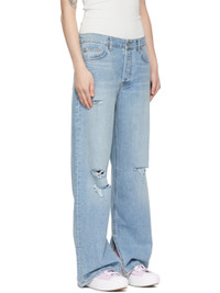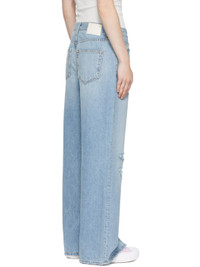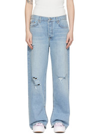 Non-stretch denim jeans. Fading and distressing throughout. · Belt loops · Button-fly · Logo patch at back waistband · Five-pocket styling · Vent at cuffs · Logo-engraved silver-stone hardware · Contrast stitching in beige Supplier color: Solana 80% cotton, 20% porco.