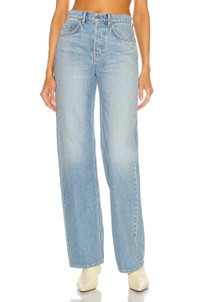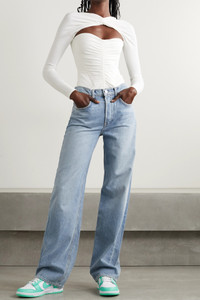 EDITORS'NOTES GRLFRND's 'Brooklyn' jeans are cut from sturdy denim in the label's faded 'Miracle Mile' wash that gives them a cool, vintage feel. Designed to sit high on the waist, they have straight legs and soft fraying along the pockets and cuffs. SIZE & FIT - Fits true to size, take your normal size - High-rise, cut for a straight-leg fit - Mid-weight, non-stretchy fabric - Size 26 jeans have an inside leg of 32.5”/ 82.5 cm - Model is 175cm/ 5'9" and is wearing a size 26 DETAILS & CARE - Light-blue denim - Partially concealed button fastenings along front - 100% cotton - Machine wash - Designer wash: Miracle Mile
