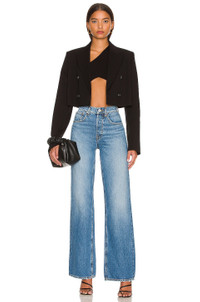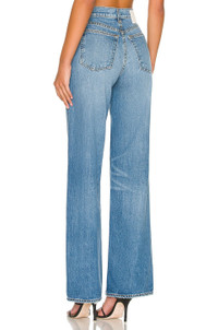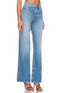 - 100% cotton - Machine wash cold - Button fly closure.5-pocket styling - Contrast logo patch at back waistline - Featherweight denim fabric with intentional fading.19" at the knee and 19" at the leg opening - High rise wide straight, fitted in the waist and loose in the thigh and super straight and relaxed through the leg. - Revolve Style No. GRLR-WJ495 - Manufacturer Style No. GF45179711725