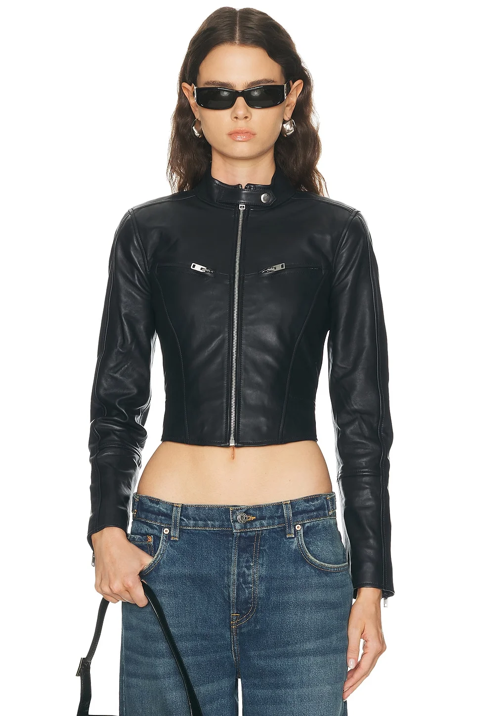 Details - Self: 100% leather - Lining: 100% polyester - Professional leather clean only - Front zip closure - Breast zip pockets and zip cuffs - Padded shoulders - Cropped fit - Heavyweight leather fabric - Made in India - Our Style No. GRLR-WO145 - Manufacturer Style No. GROW10021 S26