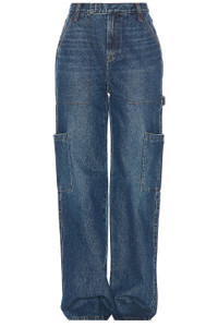 - 100% cotton - Imported - Machine wash - Zip fly with button closure.4-pocket design - Cargo pockets - Rigid denim fabric with light whiskering and fading detail.18" at the knee and 18" at the leg opening - Revolve Style No. GRLR-WJ629 - Manufacturer Style No. GF46668501876