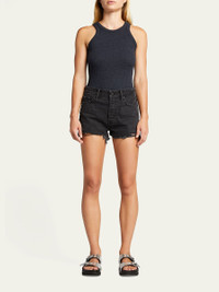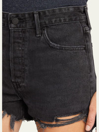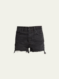 GRLFRND "Helena" cutoff shorts in rigid denim High rise Button/zip fly; belt loops Five-pocket style Frayed hem Cotton Made in USA Model is 5'10"/177cm. Online Inquiries: BGS21_T2CCC| Store Inquiries: #4155294