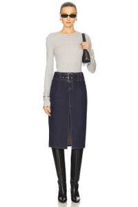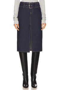 - 100% cotton - Made in USA of imported materials - Machine wash cold - Unlined Zip fly with button closure - Detachable belt with silver-tone buckle closure - Midweight rigid denim fabric with contrast stitching detailing - Skirt measures approx 27.5" in length - Revolve Style No. GRLR-WQ129 - Manufacturer Style No. GFQ10003 F25