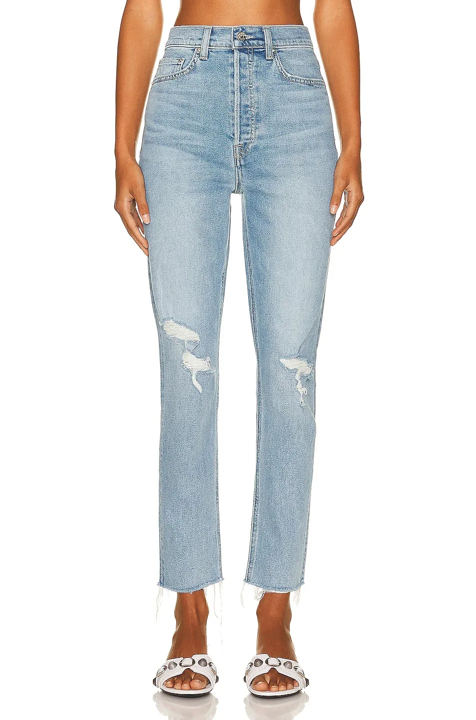 Details - 98% cotton, 2% elastic - Made in USA - Machine wash - Button fly - 5-pocket design - Intentionally distressed areas with frayed raw-cut hem - GRLFRND logo tab - Our Style No. GRLR-WJ522 - Manufacturer Style No. GF45659691781