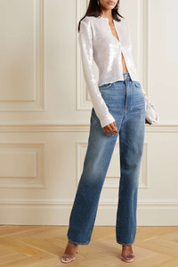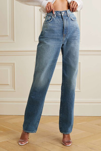 EDITORS'NOTES GRLFRND never fails to design jeans that look cool and fit just right. Made from denim in a faded wash the brand calls 'Market Street', this 'Sara' pair has classic straight legs and a high-rise waist. Wear yours with heeled mules and ankle boots alike. SIZE & FIT - DETAILS & CARE - Blue denim - Button and concealed zip fastening at front - 100% cotton - Machine wash - Designer wash: Market Street