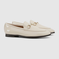 The loafer with Horsebit, representative of Gucci heritage, speaks of classic elegance. This model is crafted in white patent leather and is defined by the iconic Horsebit in a light gold-toned hue. - White patent leather - Women's - Light gold-toned hardware - Horsebit - Leather sole - Flat - 0.5" heel - Made in Italy