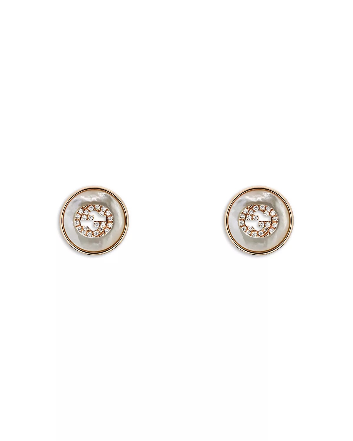 SIZE & FIT - Founded in Florence in 1921, Gucci is one of the world's leading luxury fashion brands, with a renowned reputation for creativity, innovation, and Italian craftsmanship. - Reflecting and defining the styles and attitudes of each era, Gucci has influenced fashion and culture for more than a century. PRODUCT DETAILS - From the Interlocking collection - The Interlocking G logo appears with rose gold complemented by iridescent mother-of-pearl stone and a pavé of diamonds. - Diamonds: .084 ct. t.w.; color/clarity: G/H-VVS - Mother-of-pearl - 18K rose gold - 0.5"L - Post back closure - Almost all gemstones and blue and black diamonds have been treated to enhance their beauty and require special care - Photo may have been enlarged and/or enhanced - All gemstone carat weights (ct. t.w.) are approximate; variance may be 0.05 carat. - Made in Italy Web ID: 5092472