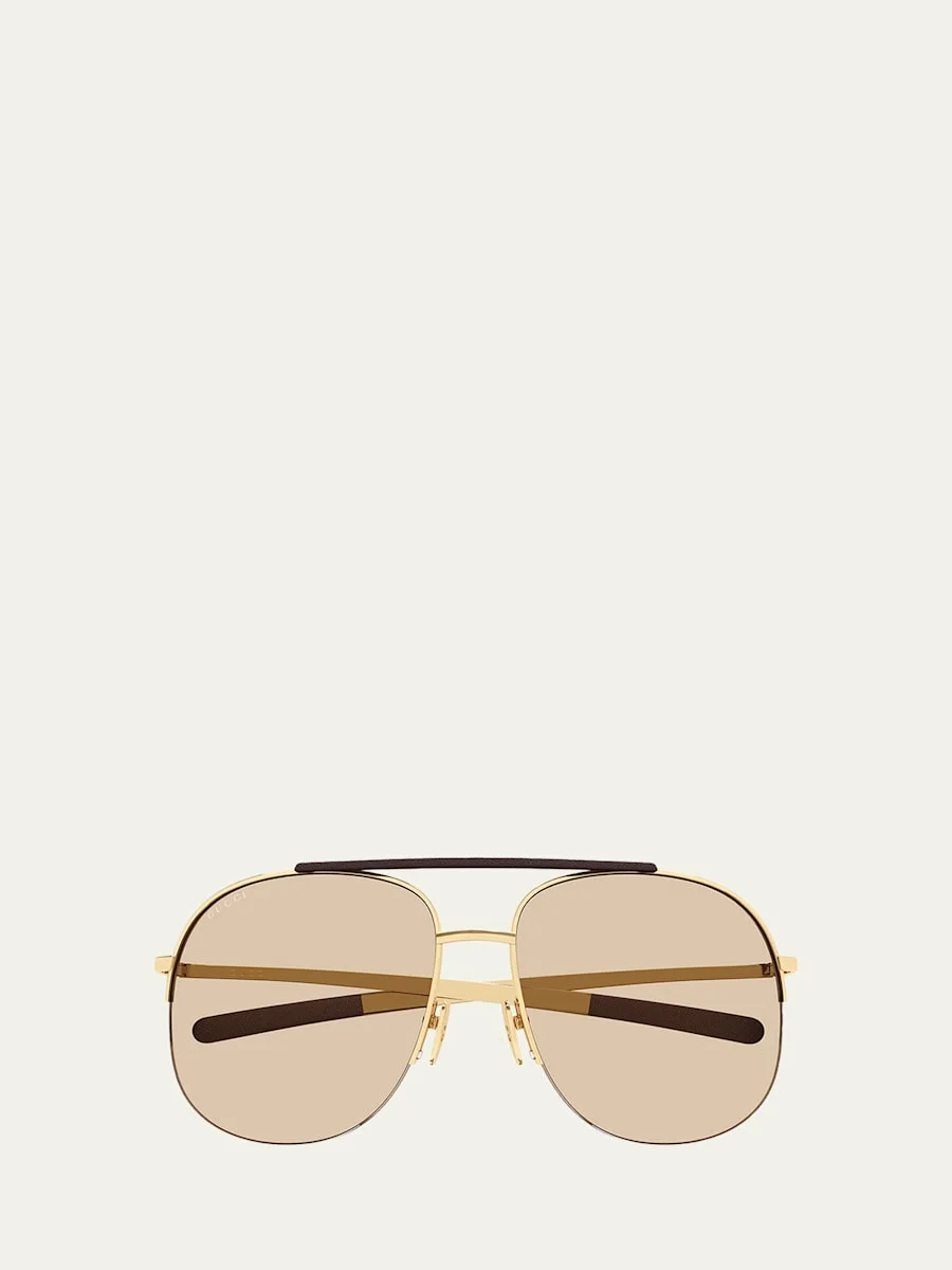 Gucci "GG2165S002" aviator sunglasses crafted from goldtone metal enhanced with a contrast browline and capped earpieces. Eye/bridge/temple (in mm): 6116135 Monochromatic lenses Adjustable nose pads Metal 100% UVA/UVB protection Made in Italy
