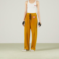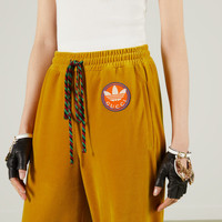 A second chapter in the adidas and Gucci collection, where the Web continues to juxtapose with the three white stripes and the GG monogram combines with the Trefoil. Pulling inspiration from the Creative Director’s memories of the '80s and '90s, emblematic House’s motifs mix with those of the historic sportswear brand adidas resulting in a series of hybrid looks. This chenille cotton pant has a relaxed tailored feel, complete with Gucci Trefoil embroidered patch. - Dark yellow chenille cotton - Gucci Trefoil embroidered patch - adidas x Gucci - Elastic waistband - Drawstring closure - Length: 42.1" based on a size small - Leg opening: 8.5" based on a size small - The product shown in this image is a size small
