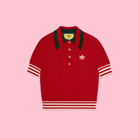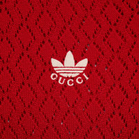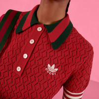 Part of the adidas x Gucci collection, this polo top features a Gucci Trefoil patch. Emblematic House’s motifs mix with those of the historic sportswear brand adidas. The collection sees both heritages encoded in a trio of lines, where adidas and Gucci combine archival emblems. Creative Director, Alessandro Michele pulls inspiration from his memories of the ‘80s and ‘90s for a collection that is both nostalgia-driven and contemporary. - Green and red Web collar - Red cotton needle punch rhombus motif - White and red rib detail - adidas x Gucci - Gucci Trefoil patch - Detachable camisole - Short sleeves - Button closure - Length: 20.4", based on a size small - Made in Italy - The product shown in this image is a size small