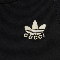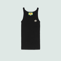 Part of the adidas x Gucci collection, this tank top features the Gucci Trefoil embroidery. adidas and Gucci venture into a collection, where the Web juxtaposes with the three white stripes, and the GG monogram combines with the trefoil. Pulling inspiration from the Creative Director’s memories of the '80s and '90s, emblematic House’s motifs mix with those of the historic sportswear brand adidas resulting in a series of hybrid looks. - Black rib cotton - Gucci Trefoil embroidery - adidas x Gucci - Scoop neck - Sleeveless - Made in Italy - The product shown in this image is a size small
