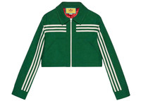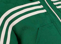 Part of the adidas x Gucci collection, this jacket features the GG Trefoil jacquard. Emblematic House’s motifs mix with those of the historic sportswear brand adidas. The collection sees both heritages encoded in a trio of lines, where adidas and Gucci combine archival emblems. Creative Director, Alessandro Michele pulls inspiration from his memories of the ‘80s and ‘90s for a collection that is both nostalgia-driven and contemporary. - Green GG Trefoil jacquard - adidas x Gucci - 3-stripes grosgrain - Lined - Point collar - Side pockets - Zip closure - Length: 27.5", based on a size 40 (IT) - Made in Italy - The product shown in this image is a size 40 (IT)