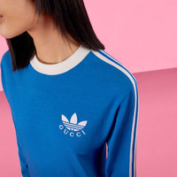 Part of the adidas x Gucci collection, this T-shirt dress features a Gucci Trefoil embroidery. Emblematic House’s motifs mix with those of the historic sportswear brand adidas. The collection sees both heritages encoded in a trio of lines, where adidas and Gucci combine archival emblems. Creative Director, Alessandro Michele pulls inspiration from his memories of the ‘80s and ‘90s for a collection that is both nostalgia-driven and contemporary. - Cobalt blue cotton jersey - Ivory trims - 3-stripes appliqué down the sleeves - adidas x Gucci - Gucci Trefoil embroidery - Crewneck - Long sleeves - Length: 33.4", based on a size small - Made in Italy - The product shown in this image is a size small