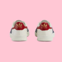 Part of the adidas x Gucci collection, this sneaker features a Gucci Trefoil print. adidas and Gucci venture into a collection, where the Web juxtaposes with the three white stripes, and the GG monogram combines with the trefoil. Pulling inspiration from the Creative Director’s memories of the '80s and '90s, emblematic House’s motifs mix with those of the historic sportswear brand adidas resulting in a series of hybrid looks. - White leather with details in Demetra—crafted from animal-free raw materials that are primarily from sustainable, renewable, and bio-based sources - Women's - White suede trim - adidas x Gucci - Gucci Trefoil label - Gucci Trefoil print - Three stripes insert - 'Gazelle' print - Gucci Trefoil embossed - Rubber sole - Flat - Made in Italy