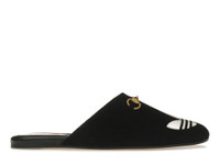 Part of the adidas x Gucci collection, this slipper features a Trefoil leather patch. adidas and Gucci venture into a collection, where the Web juxtaposes with the three white stripes, and the GG monogram combines with the trefoil. Pulling inspiration from the Creative Director’s memories of the '80s and '90s, emblematic House’s motifs mix with those of the historic sportswear brand adidas resulting in a series of hybrid looks. - Black suede - Women's - Antique gold-toned hardware - adidas x Gucci - White Trefoil leather patch - Horsebit detail - Leather sole - Flat - Made in Italy