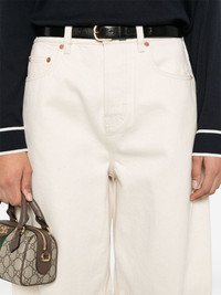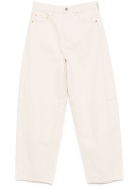 tapered-leg jeans Highlights - Light beige - Button fly fastening - Classic five pockets - Belt loops - Logo patch to the rear Made in Italy Composition Lining: Polyester 65%, Cotton 35% Outer: Cotton 100%, Bos Taurus 100% SIZE & FIT Model measurements Height 5 ft 10 in(1.77 m) Bust/Chest 31.88 in(81 cm) Hips 36.22 in(92 cm) Waist 24.01 in(61 cm) FittingInformation Designed for a tapered fit, these jeans allow a close fit at the waist and a loose unrestricted fit over the leg with a closer fit towards the ankle Sturdy and hard-wearing, this denim piece offers no stretch