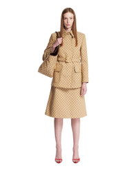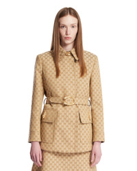 Gucci Beige GG Belted Jacket. Beige GG cotton-blend, classic collar, long sleeves, removable Dionysus buckle belt. Flap pockets with tiger head detail, regular fit. Yana is 178 cm and she is wearing size 40. DETAILS Model: 864237ZAUSC2061 Composition: 52% Polyester, 24% Cotton, 24% Polyamide Made in: ITALY Season: SS26