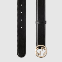 For the Cruise 2025 collection, historic codes of the House are reinterpreted in new ways with a contemporary touch. Crafted from black leather, this belt is defined by the Interlocking G buckle in light gold-toned. - Black leather - Light gold-toned hardware - Interlocking G buckle - 1.2" width - Made in Italy - Can be worn as a hip or waist belt. Sizing will differ based on where the belt is worn, please refer to the size guide to find your size.
