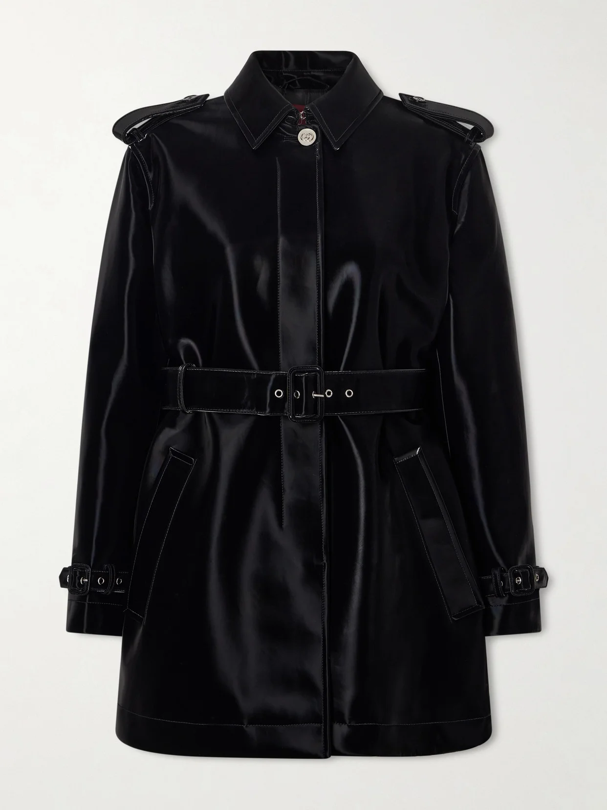 Belted Glossed-leather Trench Coat