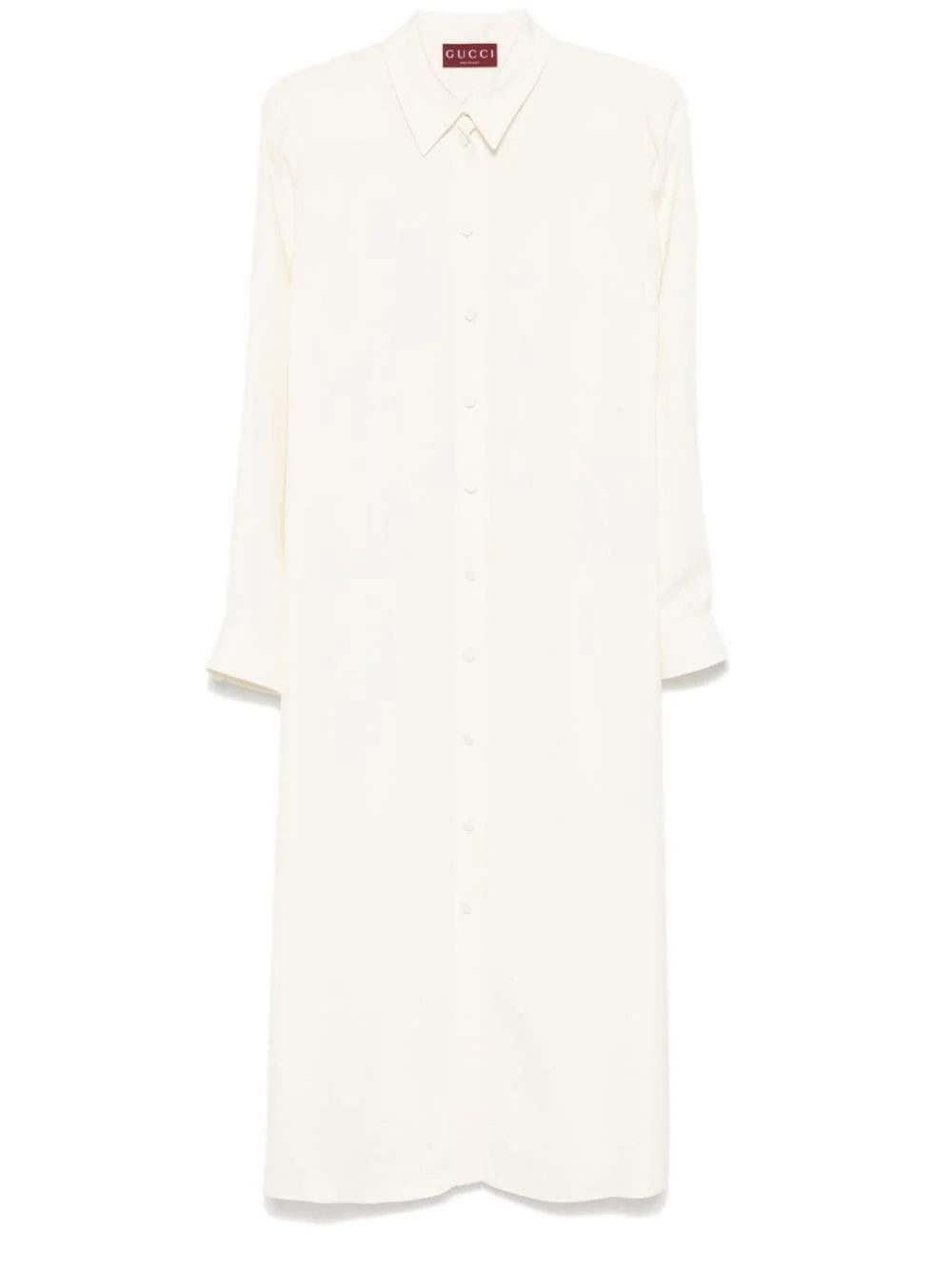 belted maxi dress Highlights - Ivory white - Cady texture - Front button fastening - Classic collar - Long sleeves - Buttoned cuffs - Detachable belt - Straight hem - Detachable slip dress - Long length Made in Italy Composition Bos Taurus 100%, Lambskin 100%, Viscose 68%, Silk 32% SIZE & FIT Model measurements Height 5 ft 11 in(1.8 m) Bust/Chest 33.07 in(84 cm) Hips 37.4 in(95 cm) Waist 25.19 in(64 cm) Measurement SLEEVE LENGTH 25.19 in(64 cm) HIPS 39.37 in(100 cm) LENGTH 49.21 in(125 cm) WAIST 37 in(94 cm) FittingInformation Designed for a relaxed fit, this piece allows for comfort and movement when worn The detachable slip sits just away from the body, offering a close yet comfortable fit Made from a midweight non-stretch fabric Washing instructions Dry Clean Only