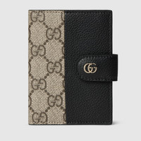 The GG Marmont collection introduces bi-color styles. Crafted from beige and dark brown GG Supreme with a contrasting black leather interior and trim, this card case features the signature Double G hardware in a light gold-toned finish. - Beige and dark brown GG Supreme, black leather - Light gold-toned hardware - Double G - Inside: 5 card slots and 2 bill compartments - Outside: 1 pocket - Snap button closure - 3.1"W x 4.3"H x 0.8"D - Weight: 0.2lb, approximately