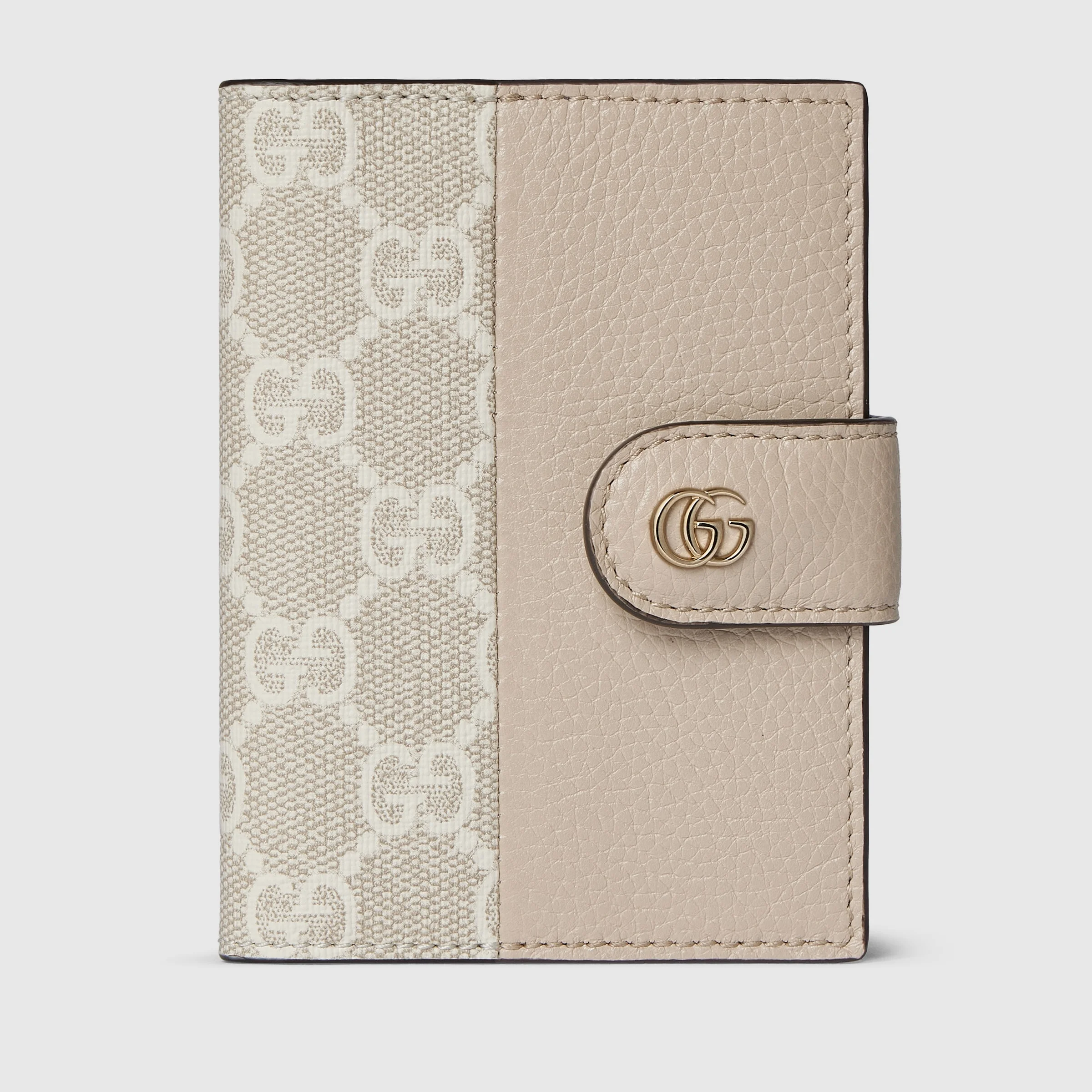 The GG Marmont collection introduces bi-color styles. Crafted from beige and dark brown GG Supreme with a contrasting light pink leather interior and trim, this card case features the signature Double G hardware in a light gold-toned finish. - Beige and brown GG Supreme, light pink leather - Light gold-toned hardware - Double G - Inside: 5 card slots and 2 bill compartments - Outside: 1 pocket - Snap button closure - 3.1"W x 4.3"H x 0.8"D - Weight: 0.2lb, approximately