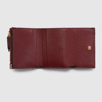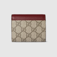 GG Marmont features colourful iterations, elevating signature silhouettes with new functions. This bi-color mini wallet is presented in Gucci Rosso Ancora red leather and beige and dark brown GG Supreme, enriched with the Double G detail. - Gucci Rosso Ancora red leather and beige and dark brown GG Supreme - Gold-toned hardware - Gucci Rosso Ancora red taffeta lining - Double G - Inside: 2 card slots, 2 flat internal pockets, 1 bill compartment, 1 zip pocket - Outside: 1 flat back pocket - Button closure - Closed: W3.9" x H3.1" x D0.6"; Open: W8.3" x H3.9" - Weight: 0.41lbs approximately - Made in Italy