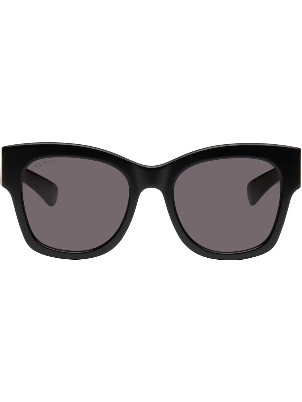 Square acetate-frame sunglasses in black. · Gray lenses · 100% UVA/UVB protection, category 3 · Logo etched at lens · Integrated nose pads · Inset logo hardware at temples · Includes pouch · Size: 53.20 145 Supplier color: Black Acetate. Made in Italy 252451F005034
