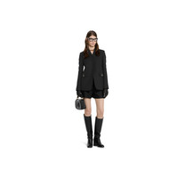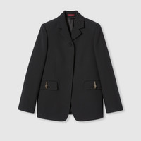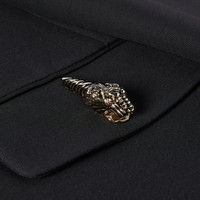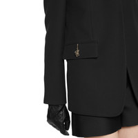 A monochrome palette with subtle details, such as embroideries or logo hardware, transitions the wardrobe from day to night in a selection of pieces from the Pre-Fall 2025 collection. This cady crepe wool silk jacket is enriched with the tiger head detail on the front pockets, a historic symbol of the House. - Black cady crepe wool silk - Tiger head detail - Lined - Notch collar - Two flap pockets with button closure - Button closure - Made in Italy