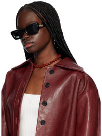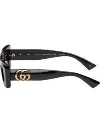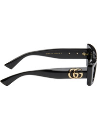 Cat-eye acetate-frame sunglasses in black. · Gray lenses · 100% UVA/UVB protection, category 3 · Logo etched at lens · Integrated nose pads · Logo hardware at temples · Includes pouch · Size: 49.22 145 Supplier color: Black Acetate. Made in Italy 252451F005016