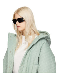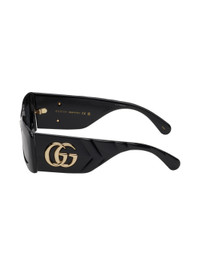 Rectangular acetate-frame sunglasses in black. · Gray lenses · Logo etched at lens · Integrated nose pads · Gold-tone logo hardware at temples · Includes velvet case · Size: 53.21 145 Supplier color: Black
